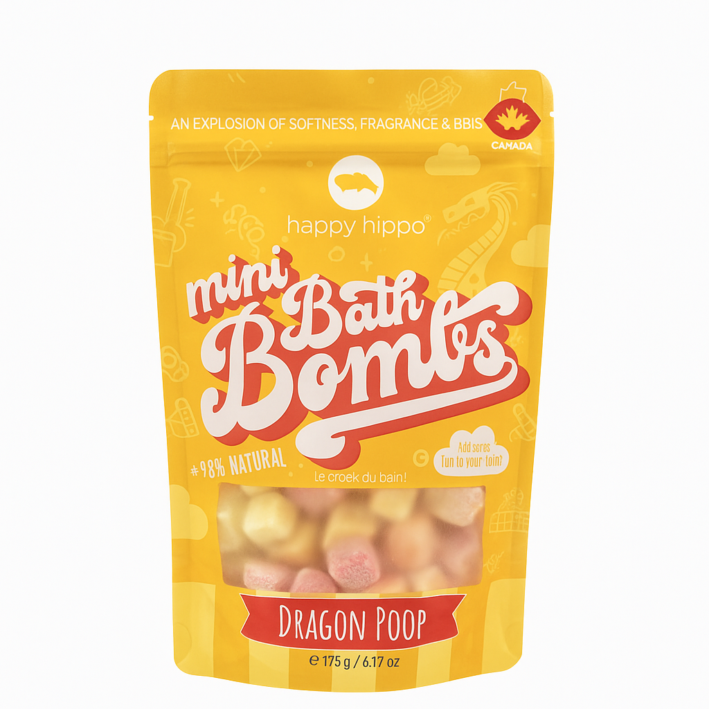 Make bath time legendary with Happy Hippo’s Dragon Poop Mini Bath Bombs! Each tiny bomb packs a punch of fiery orange and zesty lemon fragrance, bursting into brilliant colour and bubbles as they dissolve.