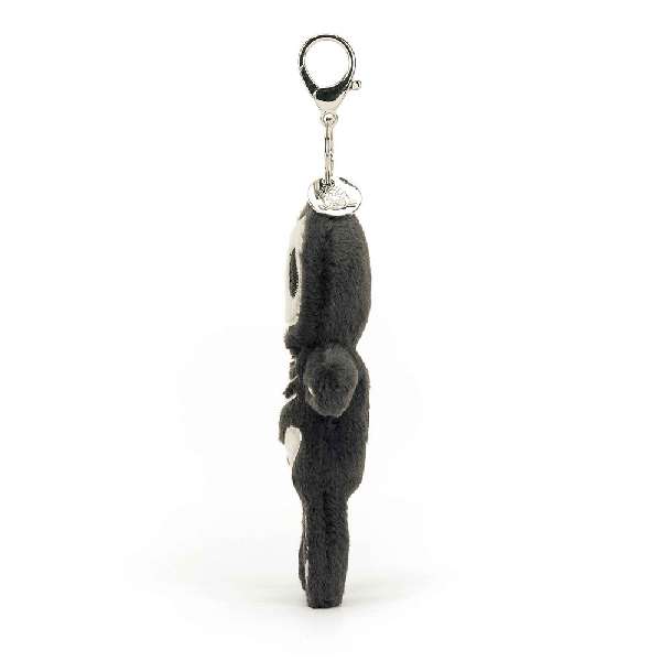Give your bag a spookover with the Skeleton Bob Bag Charm! Kookily detailed, with deep charcoal fur and embroidered bones, Bob brings the spectral antics. With a silver steel claw and Jellycat tag, he clips on to haunt your bag!