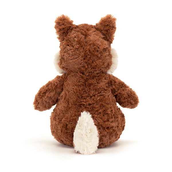 Mortimer Fox is very tousled. A brick-red cub with tufty cream cheeks, cuddly haunches and a huge chunky tail, Mortimer's endlessly huggable. With two-tone ears, a brown suedette nose and a gorgeous mussed tummy, this fox is a favourite.