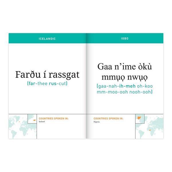 Each phrase includes an easy-to-follow phonetic pronunciation and a map highlighting the countries it is most commonly used in.