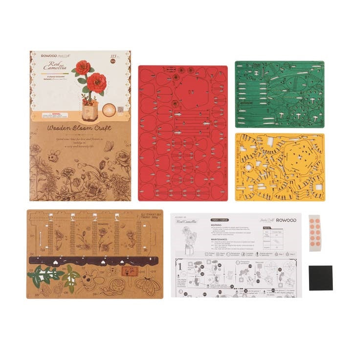 DIY 3D Wooden Flower Puzzle | Red Camellia