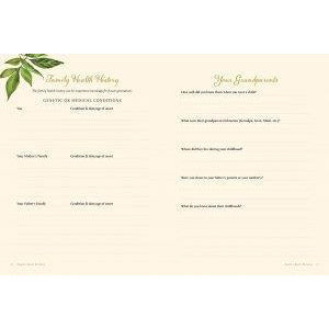 Attractive keepsake volume is organized into eight sections filled with interactive prompts around the themes of back stories, milestone moments, everyday life, celebrations, reflections, advice, and such relevant facts as family medical history and life wishes.